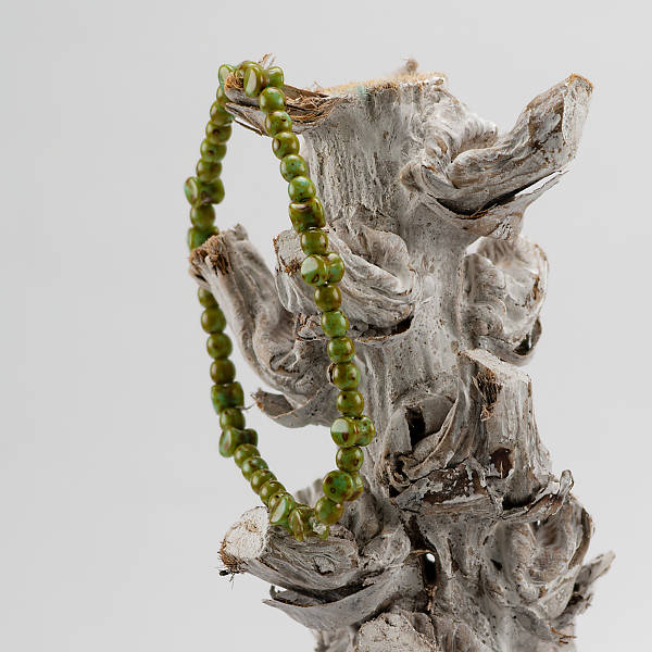 Deze armband is gemaakt met groene Tsjechische kraaltjes voor een polsmaat van 17 cm.